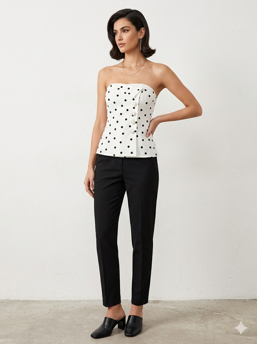 Polka Dot Strapless Corset with Pearl Detail τοπ