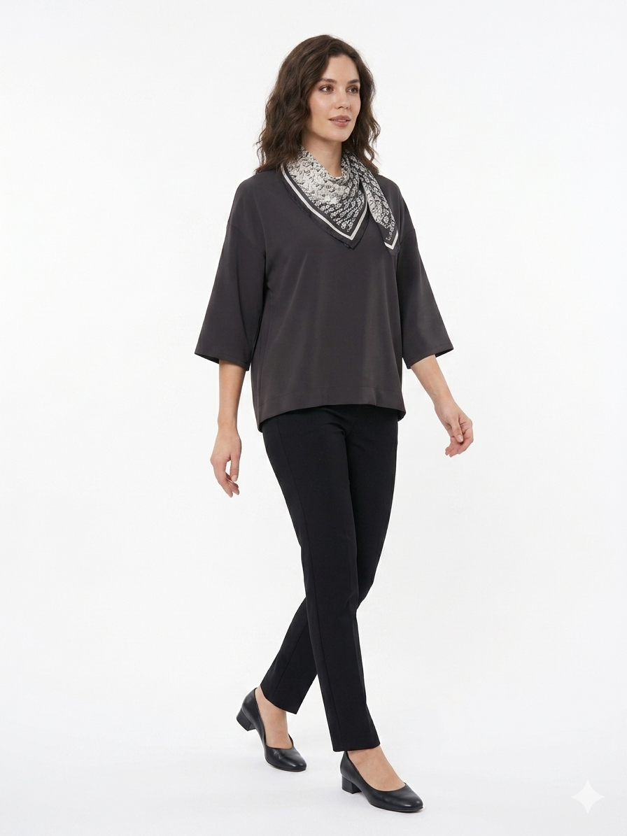 Dark Grey Boxy Tee with Scarf