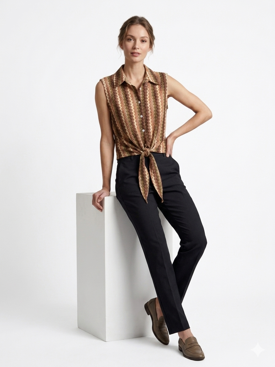 Earth-Tone Sleeveless Button-Down πουκάμισο