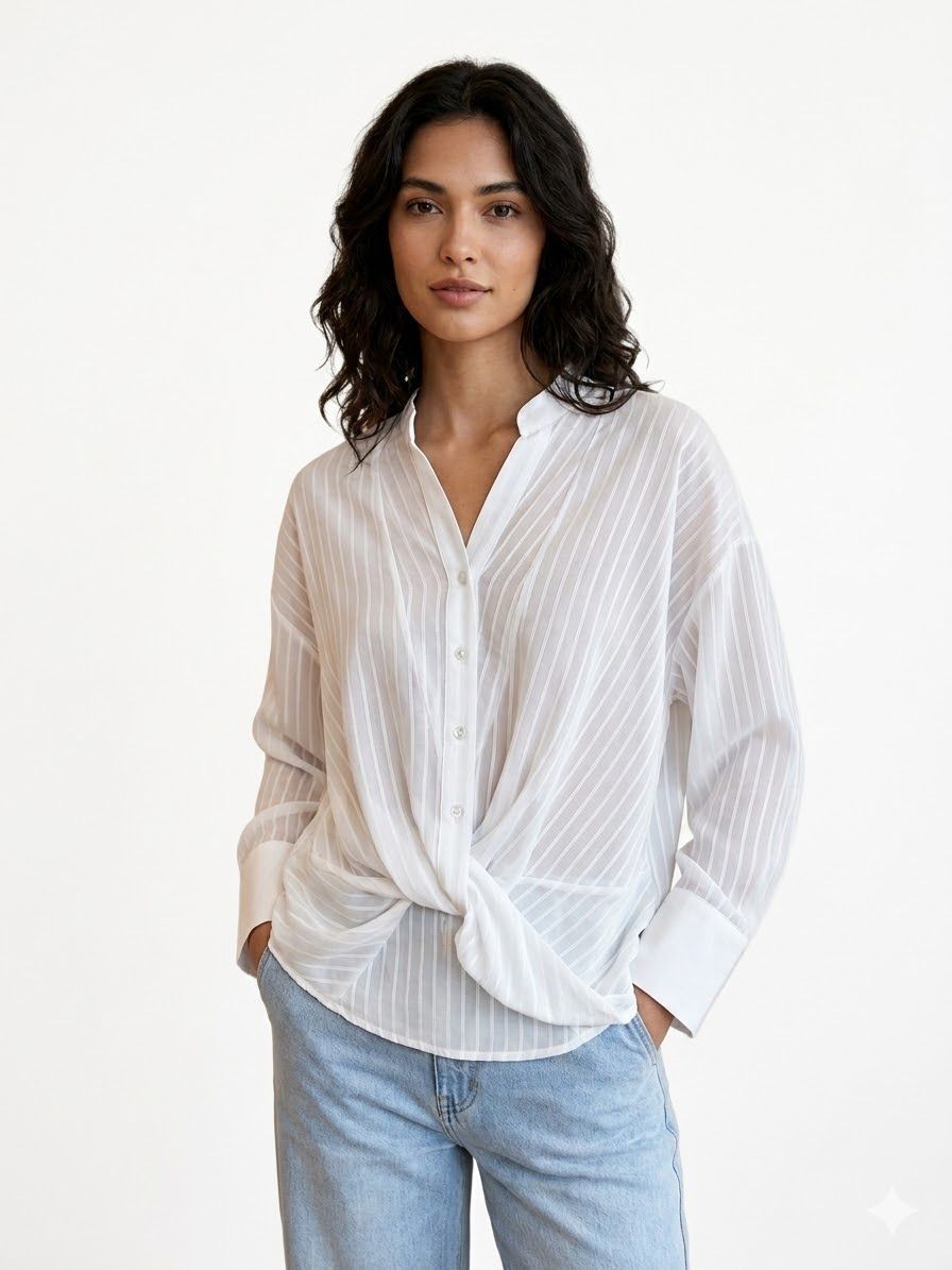 Τζιν πουκάμισο με φουσκωτούς ώμους