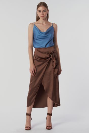 Φούστα τύπου σατέν με κόμπο στο πλάι