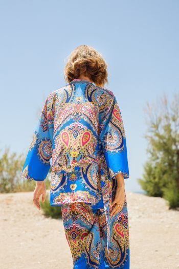 -Midi εμπριμέ μαντώ από τύπου σατέν ύφασμα.